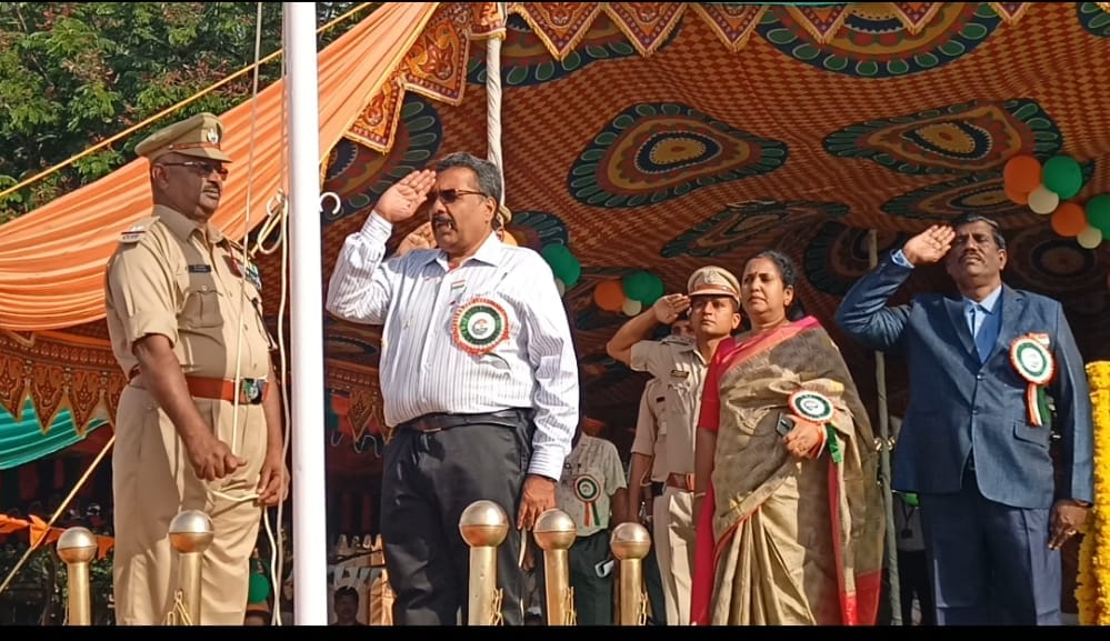 பின்னர் மத்திய தொழில் பாதுகாப்பு படை யினர் மற்றும் என் சி.சி மாணவர்களின் அணி வகுப்பு மரியாதையை ஏற்று கொண்டார். பின்னர் தனது சுதந்திர உரையில் நாட்டின் 75 வது சுதந்திர தின அமுத பெரு விழாவினை முன்னிட்டு சுதந்திரத்திற்கு பாடு பட்ட மகாத்மா காந்தி ஜவஹர்லால் நேரு டாக்டர் அம்பேத் கார் மற்றும் தனது இன்னுயிர் நீத்த தியாகிகளின் தியாகத்தினை இந்த நன்னாளில் நினைவு கூர்ந்து நாட்டின் முனேற்றத்திற்கு சீரிய வழியில் உழைக்க சபதமேற்போம்.