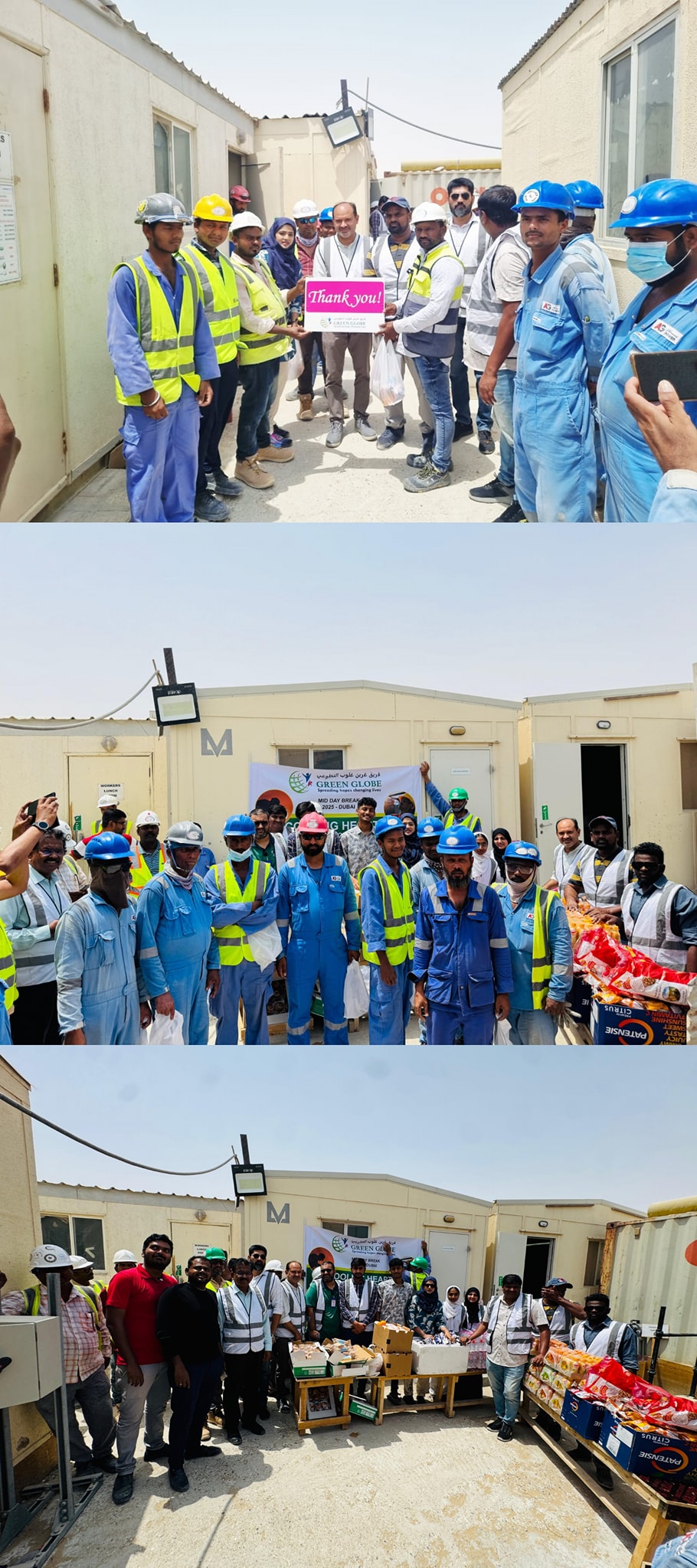 அதன் அடிப்படையில் அரசு அறிவுறுத்தலின் படி அமீரகம் மற்றும் அல்லாமல் இந்தியாவிலும் பல சமூக சேவைகள் புரிந்துவரும் கிரீன் குளோப் அமைப்பு சார்பாக “இதயங்களை குளிர்வித்தல் ” எனும் மூன்றாம் பகுதி நிகழ்வு துபாய் மதினத் ஹிந்த் பகுதி மற்றும் அதனை சுற்றியுள்ள கட்டிட பணியிடங்களிளை (construction sites) தேர்ந்தெடுத்து அப்பகுதியில் உள்ள சுமார் 350 தொழிலாளர்களுக்கு ஆப்பிள்,ஆரஞ்சு லெபன், பிஸ்கட், தண்ணீர், பழச்சாறு, கேக் போன்றவை வழங்கப்பட்டது.