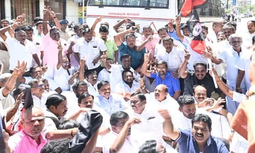 இதற்கு காவல் துறையினர் அனுமதி வழங்கவில்லை. இதைத்தொடர்ந்து தர்ணாவில் ஈடுபட்ட எடப்பாடி பழனிசாமி உள்பட அதிமுக. உறுப்பினர்கள் கைது செய்யப்பட்டனர். இந்நிலையில் எடப்பாடி பழனிசாமி மற்றும் அதிமுக சட்டமன்ற உறுப்பினர்கள் கைது செய்யப்பட்டதை கண்டித்து நெல்லை வண்ணார்பேட்டையில் மாவட்ட செயலாளர் தச்சை கணேசராஜா தலைமையில் அதிமுகவினர் ஆர்ப்பாட்டத்தில் ஈடுபட்டனர்