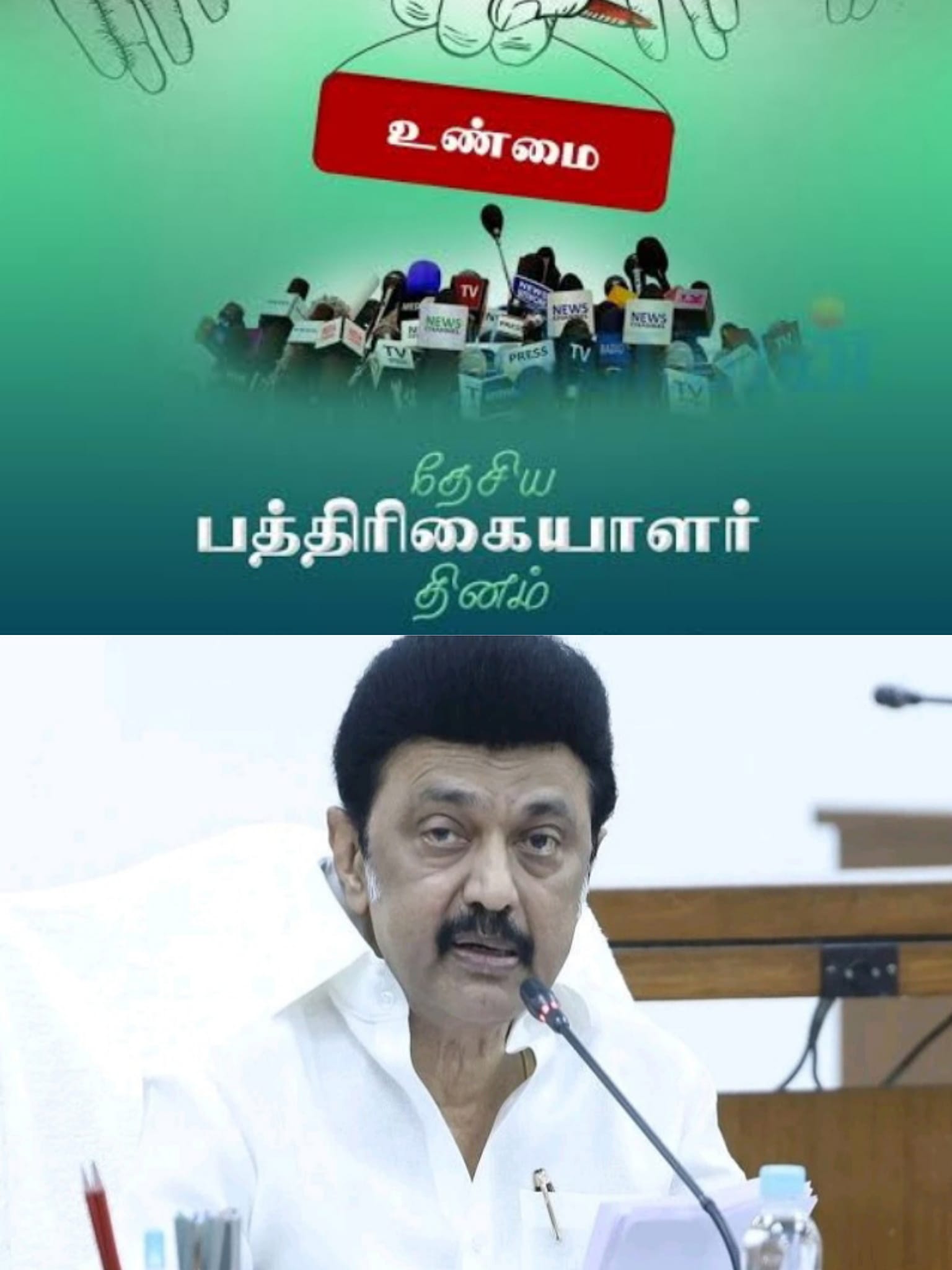 இன்று தேசிய பத்திரிகையாளர் தினத்தை முன்னிட்டு முதலமைச்சர் மு.க.ஸ்டாலின் பத்திரிக்கையாளர்களுக்கு வாழ்த்து தெரிவித்துள்ளார். உண்மையின் பக்கம் நின்று மக்களின் குரலாய் ஒலிக்கும் ஊடகங்கள் மக்களாட்சியின் நான்காவது தூணாக விளங்குகின்றன என்று கூறிய அவர் நேர்மையும் நெறியும் தவறாது பணியாற்றும் பத்திரிக்கையாளர்களுக்கு வாழ்த்துக்கள் என்றார்.